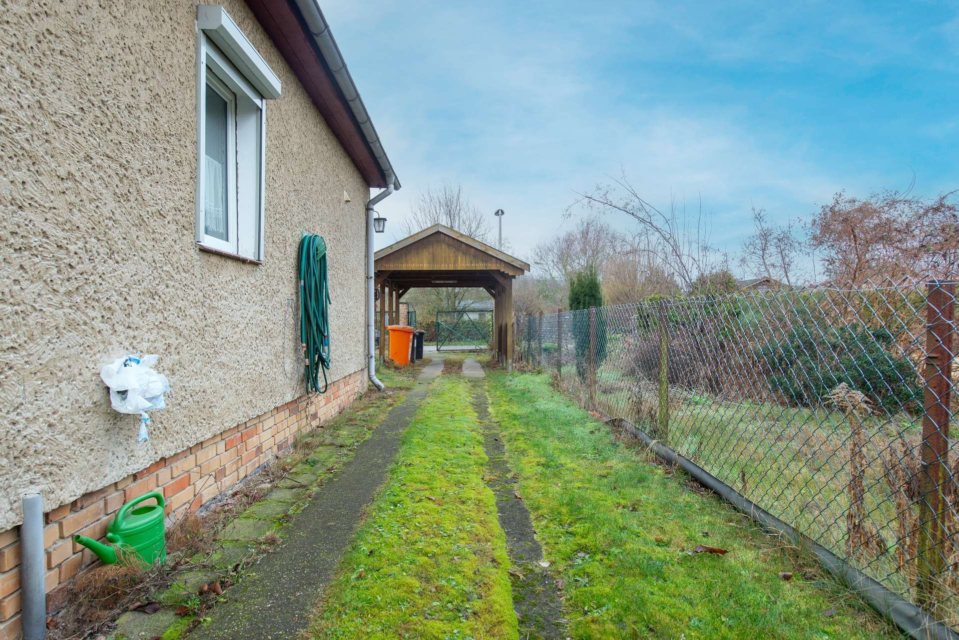 Carport: Für den Schutz Ihres Fahrzeugs ist ein praktisches Carport vorhanden.