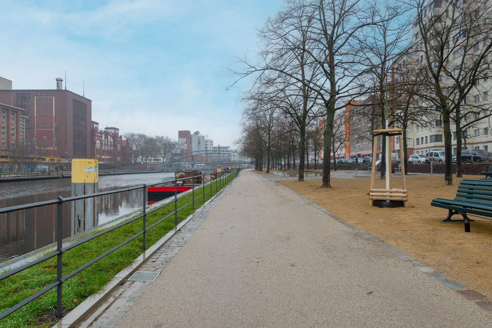 Die Wohnung liegt in einer kleinen verkehrsberuhigten Seitenstraße. In der Umgebung gibt es viele Grünflächen und die Spree liegt fast auf der anderen Straßenseite. Die Spree erstreckt sich an dieser Stelle vom Schloss Charlottenburg über den Tiergarten bis nach Mitte. Durch die zentrale Lage erreicht man schnell Moabit, Mitte, den Kudamm oder auch die Wilmersdorferstraße mit ihren zahlreichen Restaurants und Einkaufsmöglichkeiten.
