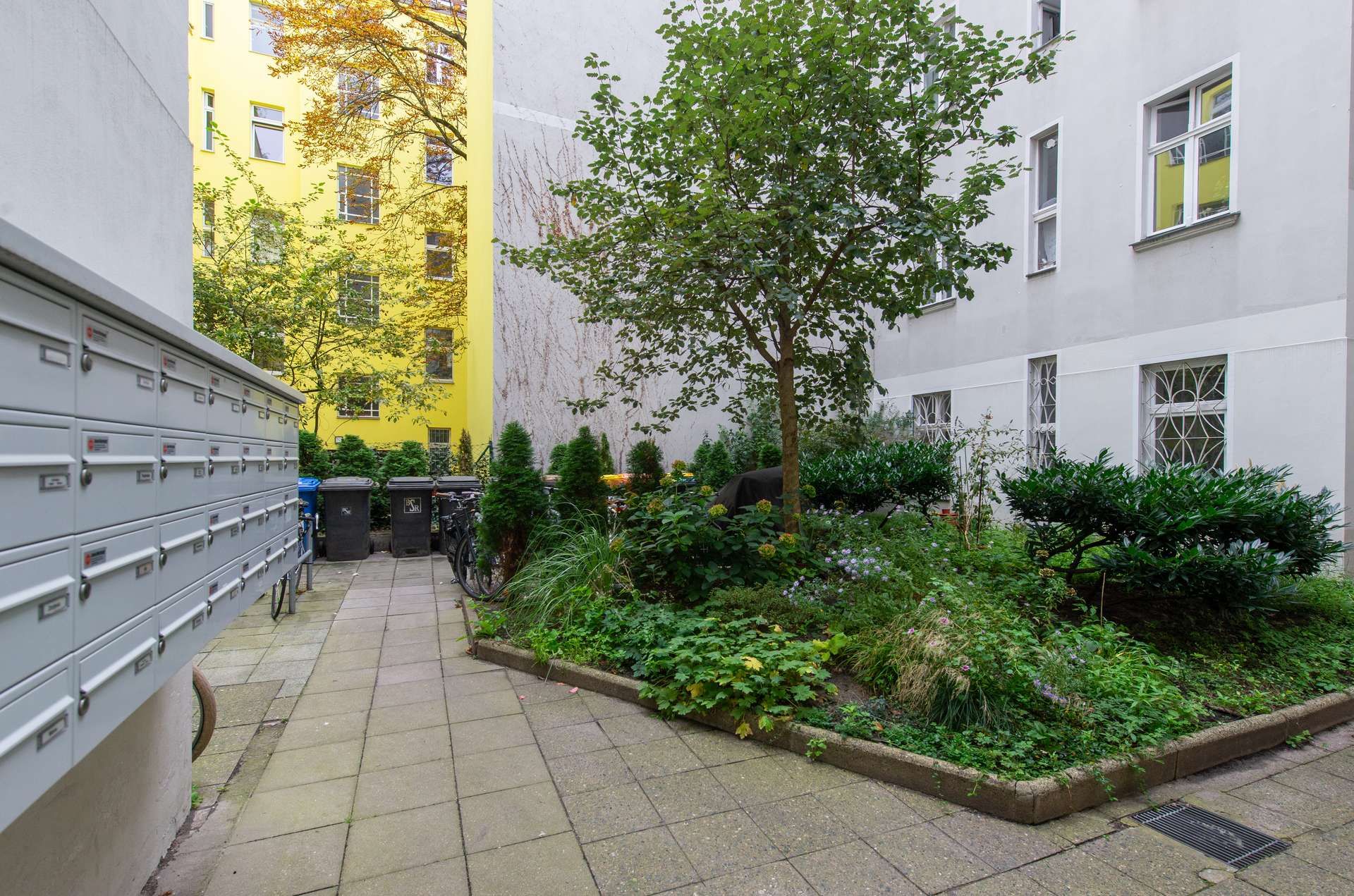✓ Angrenzender Nebenhof als Gemeinschaftseigentum, überwiegend von dieser Wohnung genutzt – seltener Privatgarten mitten in Neukölln