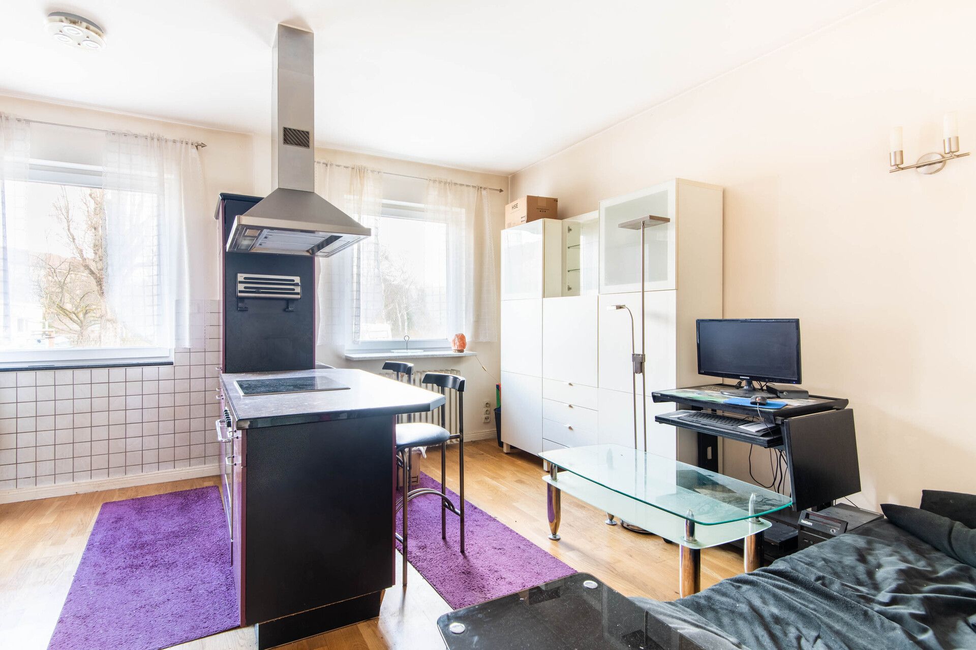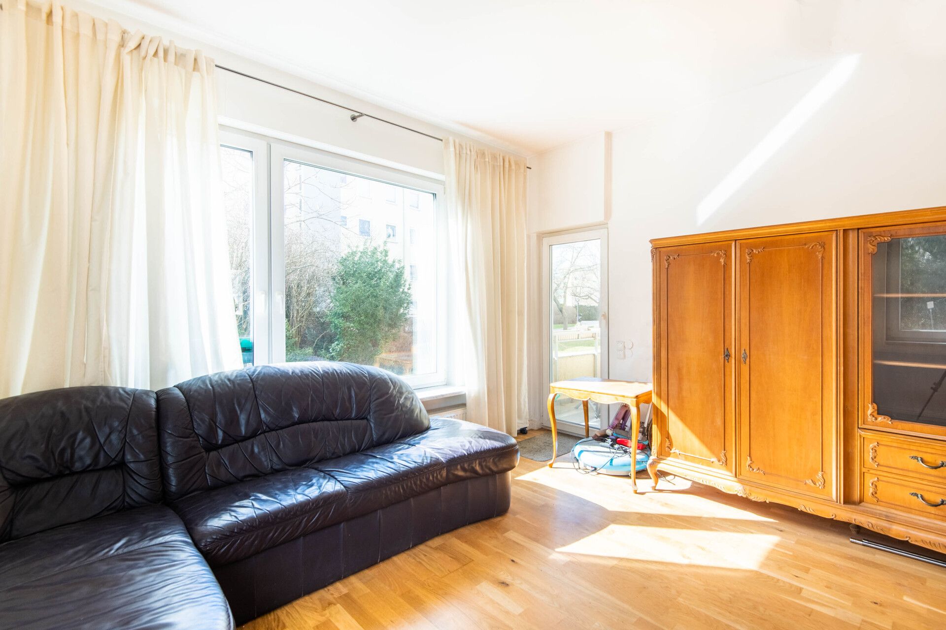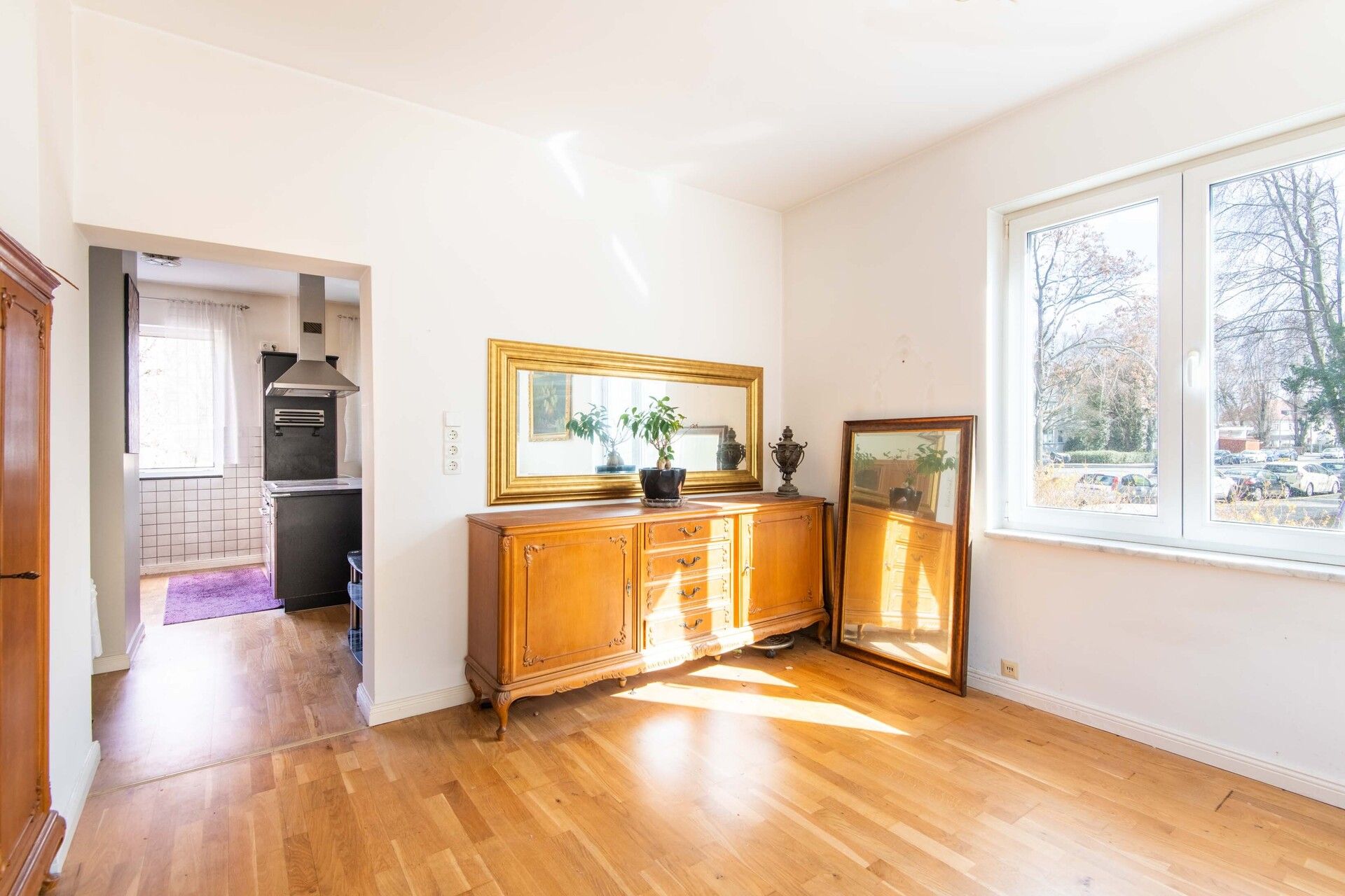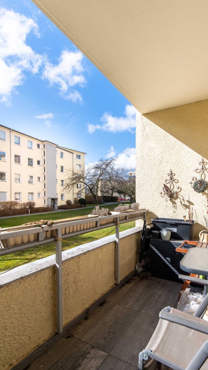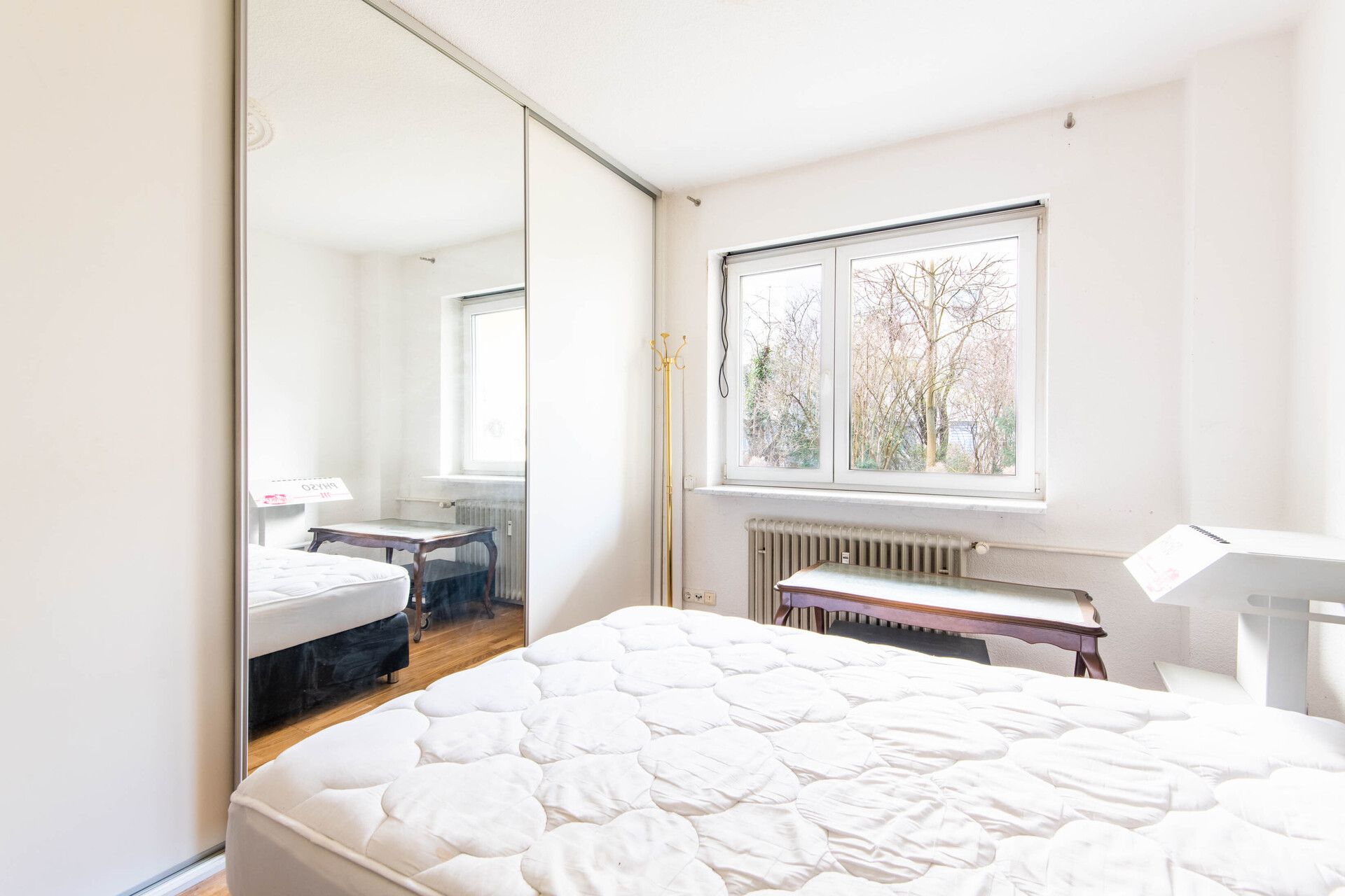 Die 2-Zimmer-Wohnung im Hochparterre ist gut geschnitten und verfügt nicht nur über zwei große, helle Zimmer, die ruhig zum Garten liegen, sondern auch über eine separate Küche mit ausreichend Platz für einen Esstisch sowie ein kleines Bad mit Badewanne und Fenster. Ein großzügiger Balkon zum Garten lädt zum Verweilen ein und ist vom Wohnzimmer aus zugänglich.