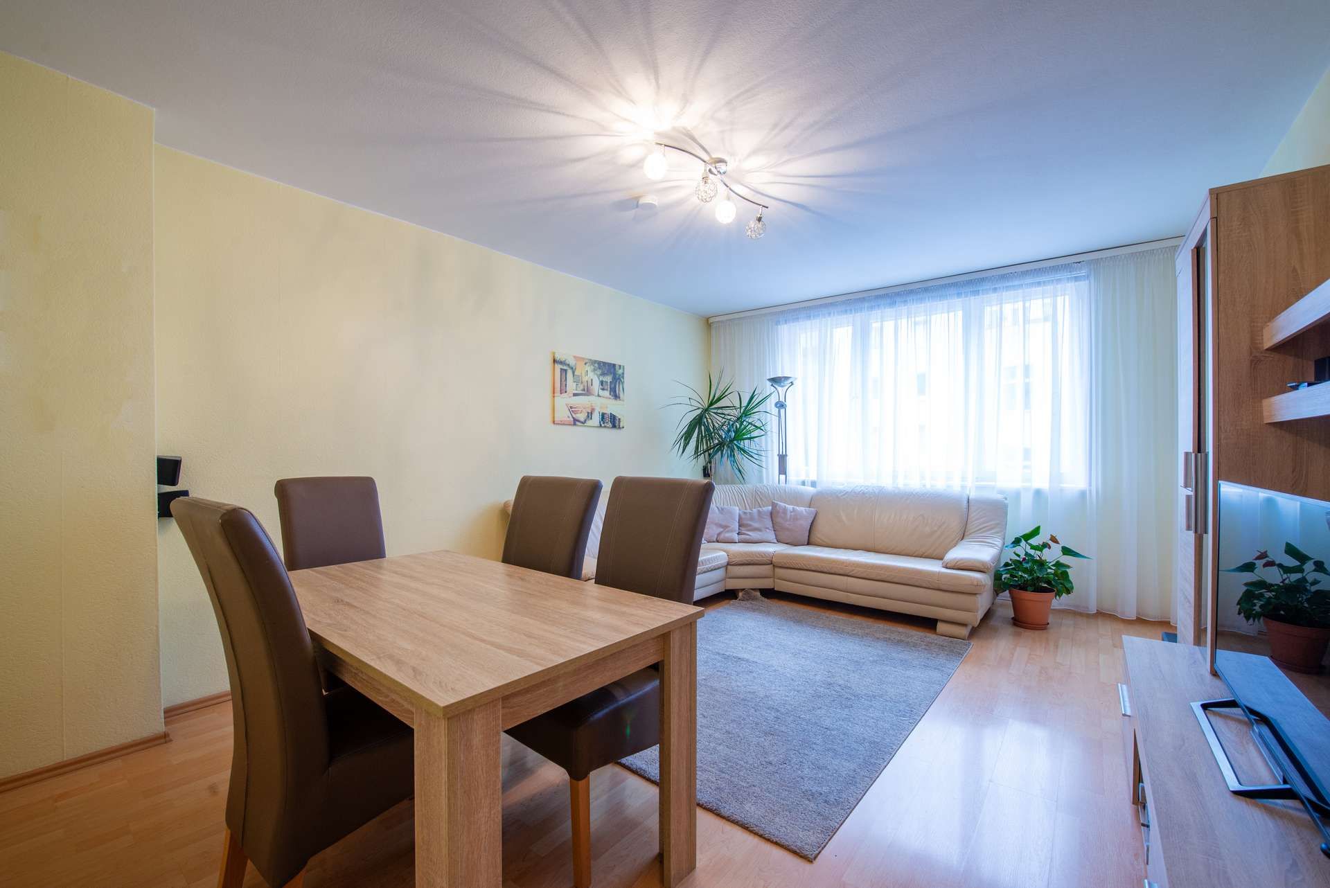 Boden: Durchgehend verlegter, heller Laminatboden für ein freundliches, harmonisches Wohngefühl