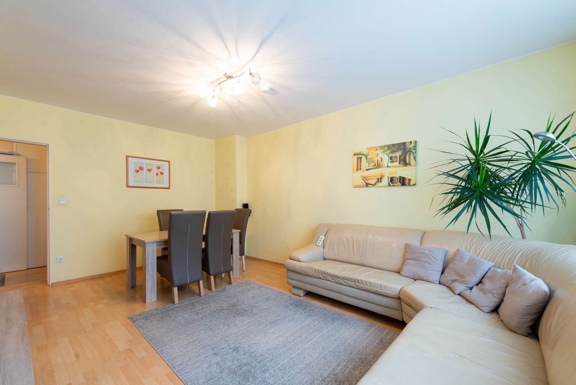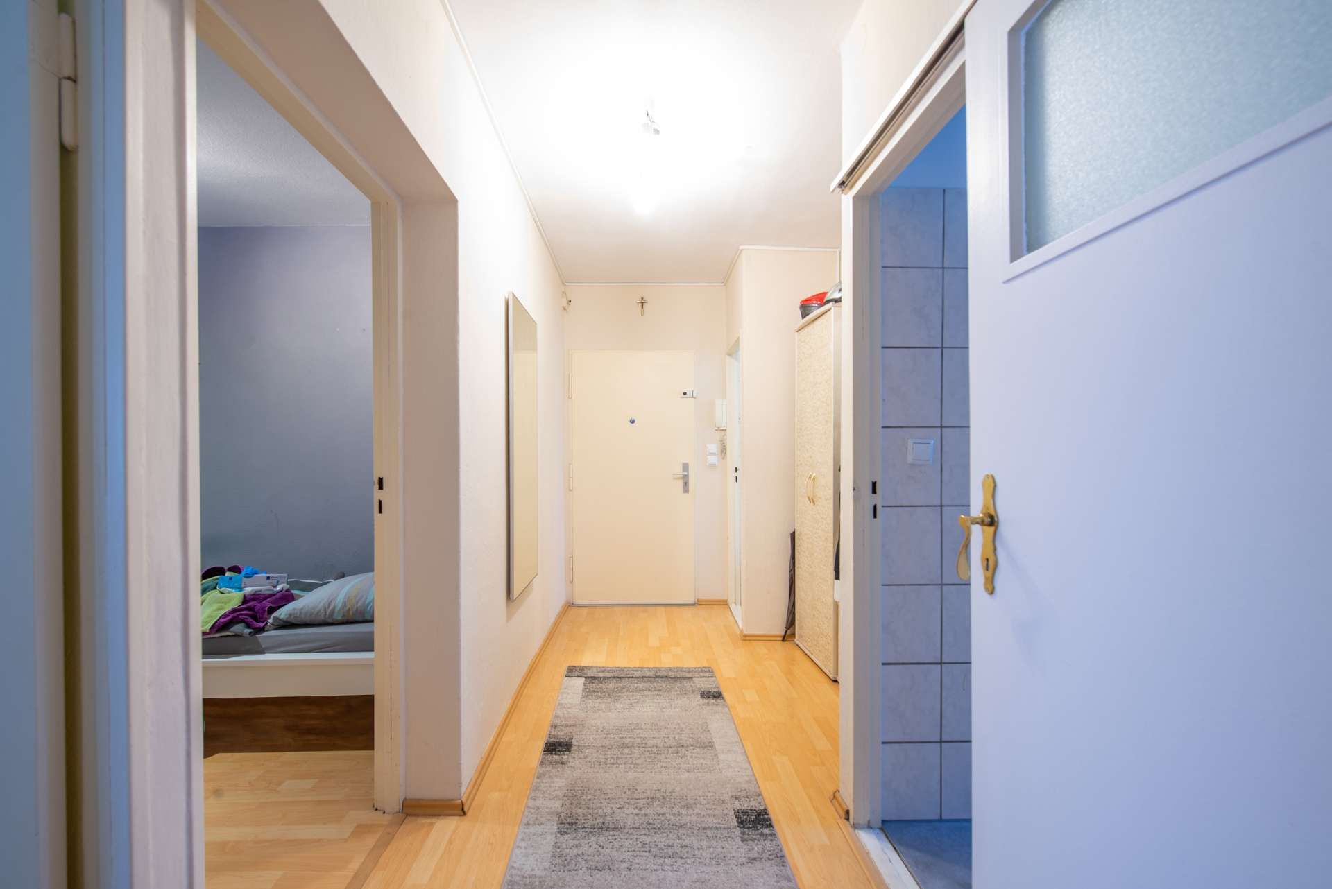 Ein besonderes Plus ist die geräumige Diele, die genügend Raum für eine Garderobe und zusätzlichen Stauraum bietet. Der helle Laminatboden, der sich durch die gesamte Wohnung zieht, unterstreicht das freundliche Ambiente und sorgt für ein harmonisches Gesamtbild.