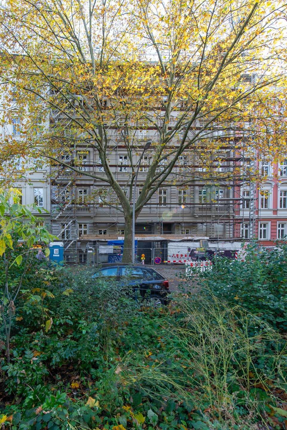Der repräsentative Stuckaltbau aus dem Jahr 1910 erstreckt sich über fünf Geschosse und beeindruckt durch seine harmonische Fassadengestaltung mit regelmäßig angeordneten Fenstern, die dem Gebäude trotz reicher Verzierungen eine elegante Ruhe verleihen. Zum Ensemble gehören das Vorderhaus sowie zwei seitliche Flügel, die sich derzeit in den letzten Zügen einer Sanierung befinden und schon bald in neuem Glanz erstrahlen.