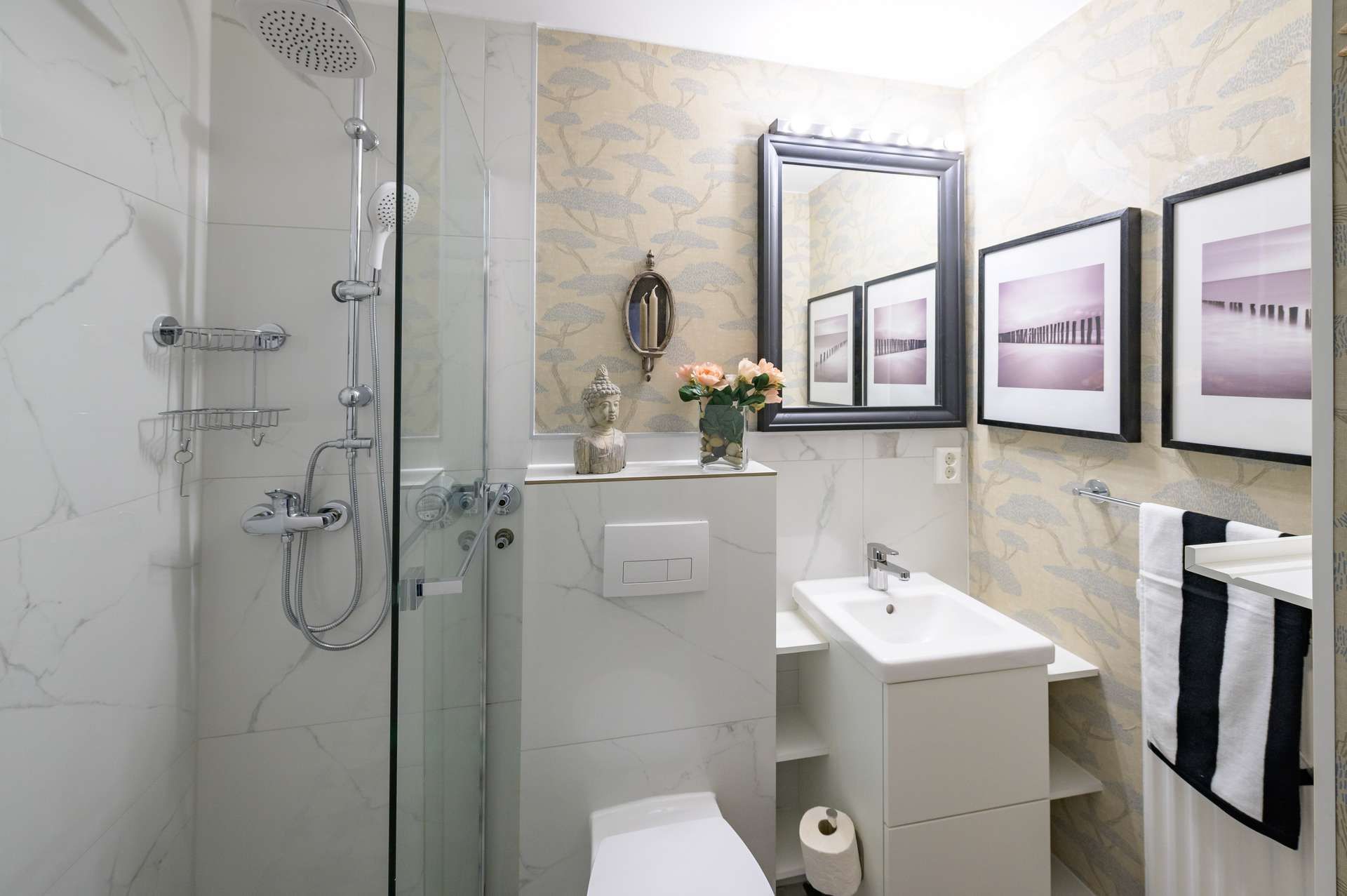 Das Badezimmer wurde hochwertig modernisiert mit einer großzügigen und bodenebenen Dusche.