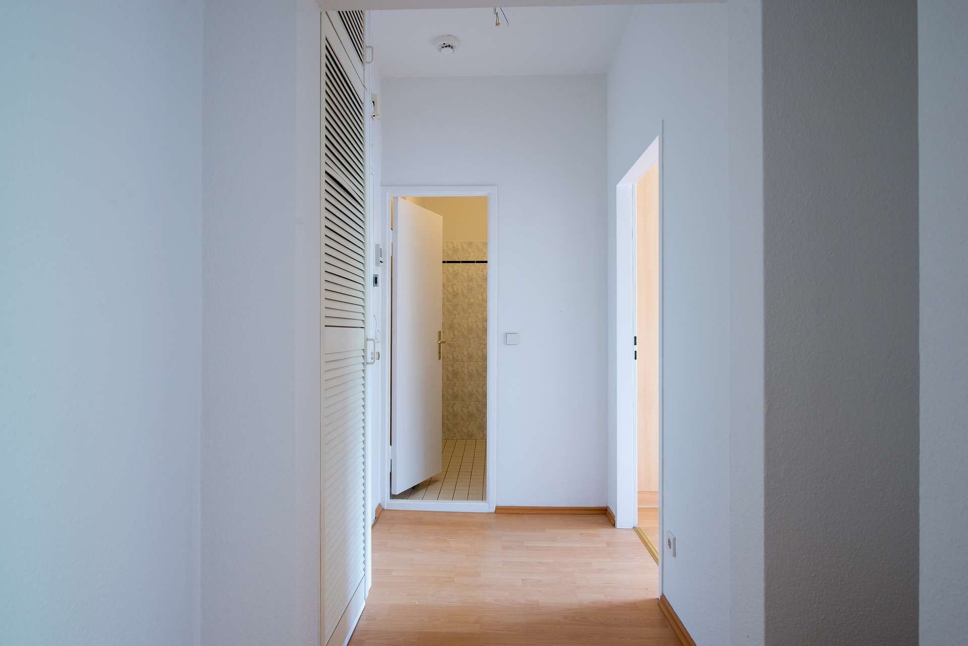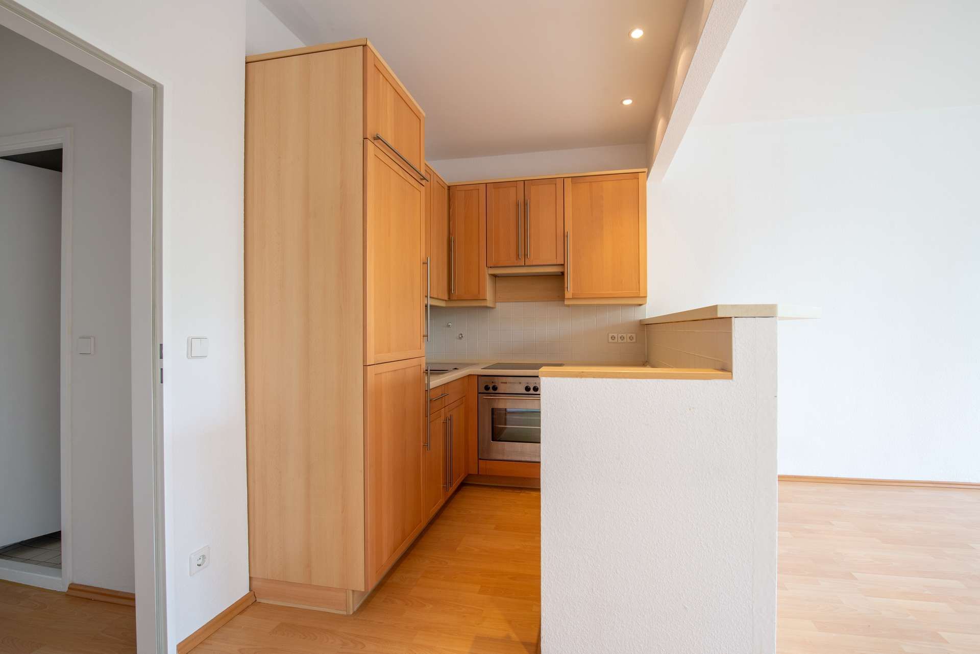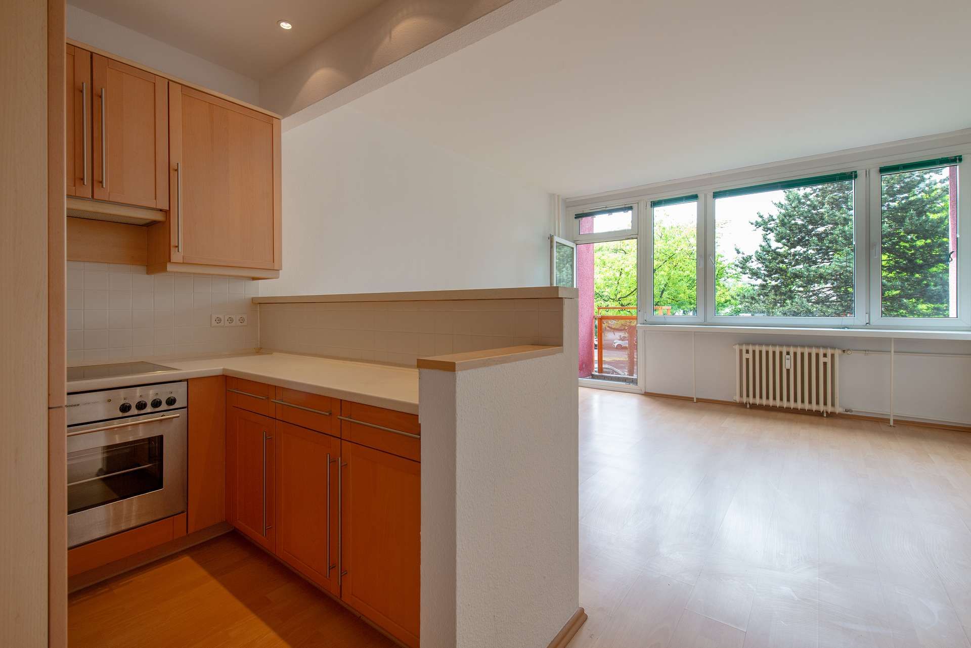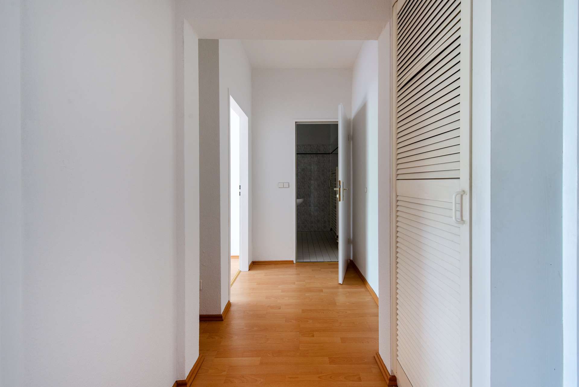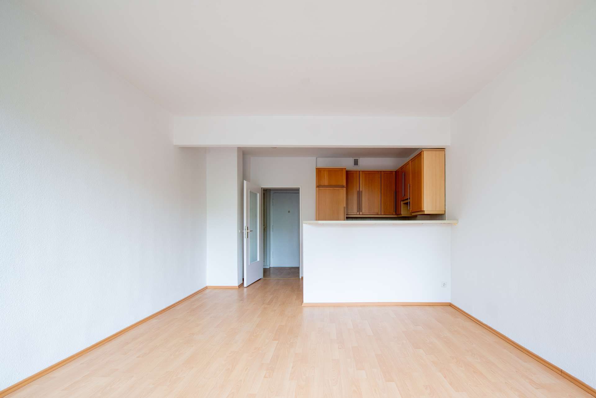 Die Wohnung verfügt über zwei große, helle Zimmer mit großer Fensterfront und jeweils einem kleinen französischen Balkon mit Südausrichtung. Die Wohnung ist bequem mit dem Aufzug zu erreichen. Sie verfügt über eine praktische Einbauküche. Das Bad ist innenliegend und mit einer Badewanne ausgestattet. Das zweite Bad war ursprünglich mit einer Dusche ausgestattet. Heute wird es hauptsächlich als Gäste-WC genutzt und bietet daher ausreichend Platz für Waschmaschine und Trockner. Zur Wohnung gehören zwei Kellerabteile.